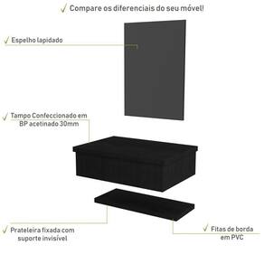 Conjunto Bancada, Prateleira E Espelheira Ktme607 Nogal Preto ônix Sobre o ProdutoConjunto Bancada, Prateleira e Espelheira KTME607 Branco ChessDescrição do Produto:O Conjunto (Bancada + Espelheira + Prateleira) Metrópole KTME607 é um produto compacto de design simples e moderno, projetado para pequenos espaços, perfeito para fazer parte da decoração do seu lavabo ou banheiro. Conta uma espelheira e prateleira com pinos invisíveis, além do suporte linha Metrópole é uma coleção de móveis modernos e com inúmeras possibilidades de composições, combinando design contemporâneo e muita funcionalidade. Diversas possibilidades de cores e modelos de cubas formam uma solução perfeita para as mais opções de decoração e projetos em ambientes de banheiro. É você quem decide!!!Itens Inclusos:1 Conjunto Bancada, Prateleira e EspelheiraDimensões dos Produtos:Bancada: 60 x 43 x 19 cmEspelheira: 43 x 1,8 x 60 cm: Informações Logísticas (Comp. X Prof. X Alt.) 63 x 47 x 26 cm - Peso: 15,18 KgPeso Total: 15,18 KgObservações:Não acompanha acessórios decorativos. Imagens meramente ilustrativas.Informações Técnicas / Características:- Cor do Produto: Branco Chess- Cor do Predominante: Branco- Marca: Compace- Modelo: KTME607- Linha: Metrópole- Material: Mdp - Acabamento: Perffect Acetinado- Escala de Brilho: Fosco- Fita de Borda: Pvc - Possui Gavetas: Não - Material do Puxador: Alumínio- Possui Prateleiras: 1- Peso Máximo por Prateleira: 02 kg- Possui Pés: Não, suspenso - Possui Espelho: Sim - Acompanha Cuba / Lavatório: Não- Furação para Cuba / Lavatório: Não - Suporta Até (kg): 12 kg - Peso Lí.: 14,28Kg- Recomendações de Uso, Manutenção e Limpeza: Para a limpeza, utilize flanela seca ou pano macio levemente umedecido em água. Utilize um pano seco em seguida. Evite com produtos químicos (solventes, thinner, acetona, etc) e não utilize nenhum tipo de esponja de aço.- Necessita de Montagem: Sim / Acompanha Manual de Montagem- Complexidade da Montagem: Média: pode ser montado por mais de uma pessoa e/ou necessite de maior conhecimento para montagem.- Garantia: 6 meses- Outras Características: Montagem ível, o suporte toalheiro pode ser montado em qualquer um dos lados. Material: Mdp | Acabamento: Perffect Acetinado | Escala de Brilho: Fosco | Fita de Borda: Pvc | Tipo de Produto: Bancada para Banheiro | Fabricante: Compace | Comprimento: 80 | Limite de unidades por venda: É possível comprar até 1 unidade por venda. | Largura: 42 | Altura: 19 | Quantidade máxima de pedido: 1 | Profundidade: 42 | Preço tabelado: 279.72000000000003 | Cor: Multicolorido | Certificação de teste externa: Não Aplicável | Baterias são necessárias?: false | Palavras-chave de Pesquisa: Não aplicável | Fonte de energia: Não aplicável | Peso do item: | Componentes incluídos: | Exige montagem: | da peça: | Principais Características do Produto 2: | Principais Características do Produto 0: | Dimensões do item P x L x A: | Principais Características do Produto 1: | Is Fragile: | do modelo: | Quantidade de itens: | de caixas: Cor: Preto Ônix