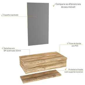Sobre o ProdutoConjunto Bancada, Prateleira e Espelheira KTME807 Branco ChessDescrição do Produto:O Conjunto (Bancada + Espelheira + Prateleira) Metrópole KTME807 é um produto compacto de design simples e moderno, projetado para pequenos espaços, perfeito para fazer parte da decoração do seu lavabo ou banheiro. Conta uma espelheira e prateleira com pinos invisíveis, além do suporte linha Metrópole é uma coleção de móveis modernos e com inúmeras possibilidades de composições, combinando design contemporâneo e muita funcionalidade. Diversas possibilidades de cores e modelos de cubas formam uma solução perfeita para as mais opções de decoração e projetos em ambientes de banheiro. É você quem decide!!!Itens Inclusos:1 Conjunto Bancada, Prateleira e EspelheiraDimensões dos Produtos:Bancada: 80 x 43 x 19 cmEspelheira: 43 x 1,8 x 80 cm: Informações Logísticas (Comp. X Prof. X Alt.) 83 x 47 x 26 cm - Peso: 19,11 KgPeso Total: 19,11 KgObservações:Não acompanha acessórios decorativos. Imagens meramente ilustrativas.Informações Técnicas / Características:- Cor do Produto: Branco Chess- Cor do Predominante: Branco- Marca: Compace- Modelo: KTME807- Linha: Metrópole- Material: Mdp - Acabamento: Perffect Acetinado- Escala de Brilho: Fosco- Fita de Borda: Pvc - Possui Gavetas: Não - Material do Puxador: Alumínio- Possui Prateleiras: 1- Peso Máximo por Prateleira: 02 kg- Possui Pés: Não, suspenso - Possui Espelho: Sim - Acompanha Cuba / Lavatório: Não- Furação para Cuba / Lavatório: Não - Suporta Até (kg): 12 kg - Peso Lí.: 18,04Kg- Recomendações de Uso, Manutenção e Limpeza: Para a limpeza, utilize flanela seca ou pano macio levemente umedecido em água. Utilize um pano seco em seguida. Evite com produtos químicos (solventes, thinner, acetona, etc) e não utilize nenhum tipo de esponja de aço.- Necessita de Montagem: Sim / Acompanha Manual de Montagem- Complexidade da Montagem: Média: pode ser montado por mais de uma pessoa e/ou necessite de maior conhecimento para montagem.- Garantia: 6 meses- Outras Características: Montagem ível, o suporte toalheiro pode ser montado em qualquer um dos lados. Material: Mdp | Acabamento: Perffect Acetinado | Escala de Brilho: Fosco | Fita de Borda: Pvc | Tipo de Produto: Bancada para Banheiro | Fabricante: Compace | Comprimento: 80 | Largura: 42 | Limite de unidades por venda: É possível comprar até 1 unidade por venda. | Quantidade máxima de pedido: 1 | Altura: 19 | Profundidade: 42 | Preço tabelado: | Cor: Multicolorido | Certificação de teste externa: Não Aplicável | Baterias são necessárias?: false | Palavras-chave de Pesquisa: Não aplicável | Fonte de energia: Não aplicável | Peso do item: | Principais Características do Produto 1: | Principais Características do Produto 0: | Dimensões do item P x L x A: | Is Fragile: | Exige montagem: | Componentes incluídos: | Principais Características do Produto 2: | da peça: | de caixas: | Quantidade de itens: | do modelo: Cor: Carvalho