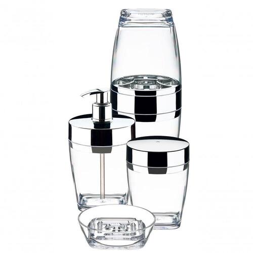 O Conjunto para Banheiro é o kit completo para guardar e organizar os itens de higiene pessoal. É composto por quatro peças: um porta escova e creme dental, um porta sabonete líquido, um porta algodão e uma saboneteira.