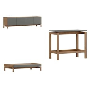 Transforme sua sala de estar em um espaço moderno e acolhedor com o Conjunto Barcelona da Finestra Móveis. Produzidos em madeira maciça (cor Oak) com detalhes em MDF (cor Ferrolack) e acabamento em verniz PU/UV acetinado, os móveis unem sofisticação, resistência e praticidade.