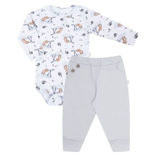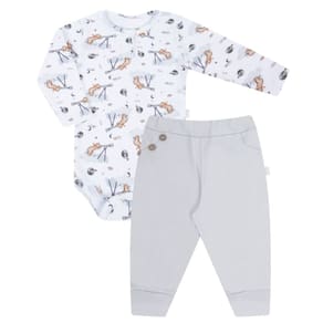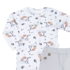 Conjunto Body Longo + Calça Culote Lunar - Hug: Estilo para seu bebê, com conforto e toque de maciez exclusivo Hug. Item indispensável no guarda - roupas. Produzido por estilistas e costureiras especializados em moda infantil, leva todo cuidado e amor que os pequenos precisam. Com detalhes e acabamento que encantam, seu bebê fica lindo e pronto para passear ou brincar. O Body possui botões na parte superior frontal, e botões decorativos na parte frontal da calça. Confira abaixo todos os detalhes: DIFERENCIAIS: Confeccionado todo em suedine. Elasticidade e macio. Bordado exclusivo protegido. Estampa exclusiva hug CARACTERÍSTICAS: -Body: 100% Algodão -Calça: 100% Algodão Cor: Body - Estampado / Calça - Cinza MEDIDAS: Tamanhos Indicados: PR- Prematuro RN - Recém - nascido P - Veste de 0 a 3 meses M - Veste de 3 a 6 meses G - Veste de 6 a 9 meses GG - Veste de 9 a 12 meses