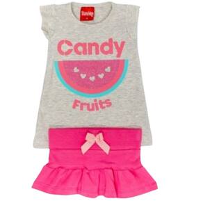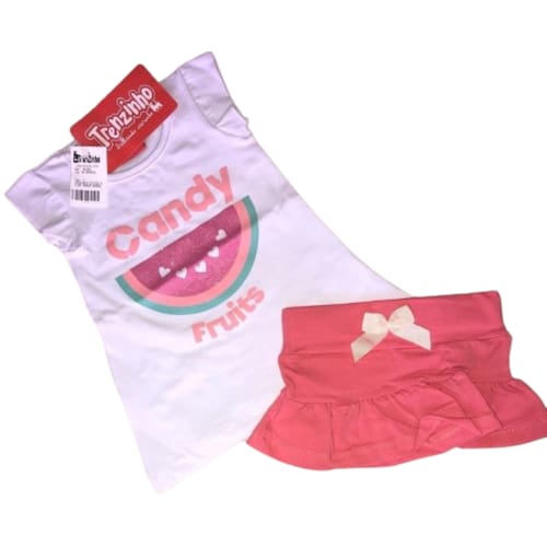 Esse conjunto de roupa infantil é composto por uma blusa e uma mini saia, disponível no tamanho 1 ao 3. A blusa possui mangas curtas e é confeccionada em um tecido leve e confortável, 94% algodão, 4% elastano e 2% poliéster. Estampa com gliter, colorido e divertido o que a torna atrativa para as crianças. Além disso, a blusa possui um decote arredondado e um caimento soltinho na parte inferior, proporcionando liberdade de movimento.A Mini saia também é feito em um tecido de qualidade, 96% algodão e 4% elastano, garantindo o conforto da criança durante o uso. A mini saia é elástico na cintura, possibilitando um ajuste perfeito ao corpo da criança. Um lacinho na frte que a torna uma opção bastante charmosa.Como características principais desse conjunto, podemos destacar a qualidade dos tecidos utilizados, que garantem o conforto da criança, além das estampas alegres e coloridas, que conferem um visual divertido e moderno. O ajuste perfeito proporcionado pelo elástico na cintura da saia também é uma característica importante, garantindo que a roupa se adapte ao corpo da criança.Esse conjunto é ideal para ocasiões descontraídas e casuais, como passeios e brincadeiras ao ar livre. Além disso, por ser composto por peças separadas, ele também permite a combinação com outras peças do guarda-roupa infantil, proporcionando versatilidade no uso.Esse conjunto está disponível em diferentes tamanhos, o que possibilita atender crianças de diferentes idades e tamanhos. É uma opção prática e estilosa para vestir as crianças com conforto e qualidade.-Envio em até 24 horas após confirmação de pagamento!Cuidados com a peça:Alvejamento – Não alvejarLavagem – Lavagem a mãoSecagem – Não secar em tamborLavagem Profissional – Não lavar a secoSecagem Natural – Secagem a sombraAcompanha o produto:1 Conjunto ( 1 Blusa + 1 Mini Saia)
