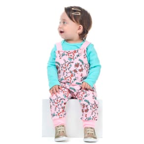 Kit com 2 jardineiras e 2 bodies Jardineira em moletom felpudo, com botões extras body manga longa em suedine Jardineira com botões extras, estampada. Moletom com parte interna felpuda Body manga longa em suedine