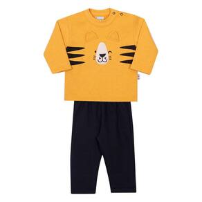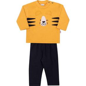 Conjunto Blusão e Calça Moletom Jaca Lelé. O Blusão confeccionado em moletom felpado, possui gola redonda, ombro deslocado, estampa frontal com detalhe de aplique de bordado. Os tamanhos para bebê (6/9M (M) e 9/12M (G), possuem abertura abertura no ombro por botões de pressão para facilitar a vestimenta. A calça confeccionada em moletom felpado com cós elástico.