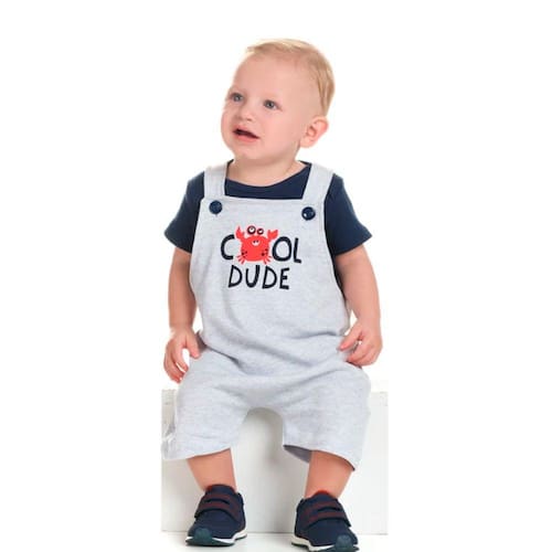 Conjunto bebê (feminino e masculino) suedine com jardineira com dois botões em cada alçae body manga curta. Modelinho perfeito para um dia no parque, uma festa de aniversário ou apenas para ficar em casa com a família. Composição: 98% Algodão/ 2% Poliéster (Jardineira). 100% Algodão (Body). O conforto e estilo se combinam para criar um visual adorável que fará com que o seu pequeno se destaque em qualquer situação. A estampa na jardineira é bem fofa e combina perfeitamente com a camiseta preta lisa. Uma ótima opção para o enxoval. Disponível nos tamanhos P, M, G e GG.Cuidados:- Lavar à temperatura máxima de 40ºC;- Não utilizar alvejante;- Não usar secadora;- Passar à ferro em temperatura baixa até 110°C;- Não lavar a seco;- Secar pendurado no cabide;- Lavagem úmida à profissional.