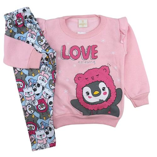 Conjunto Bebê Menina Blusa e Legging Peluciada Pinguim Frio - Delicadeza, conforto e diversão em um só look para sua bebê!