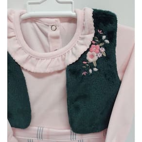 - Colete em pelo, super macio, quentinho e confortável. Detalhe de bordado floral maravilhoso na frente. Forro em tecido algodão, que provém mais conforto. Um encanto!