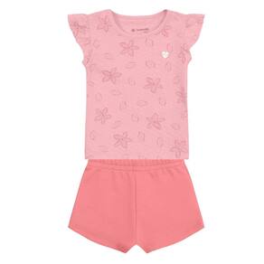 Conjunto bebê menina florido Brandili Baby - Rosa - P