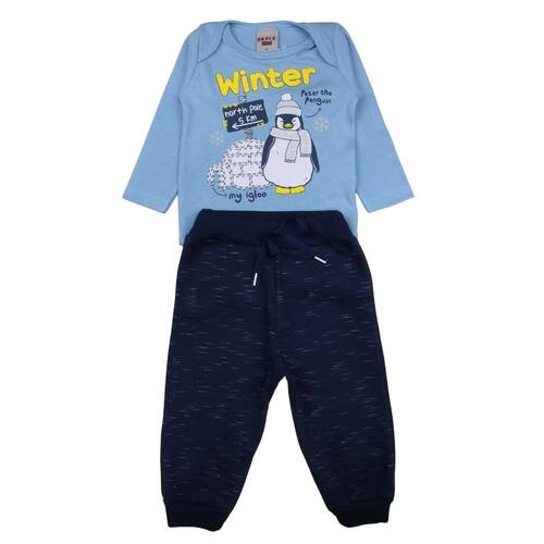 Conjunto Bebê Menino Azul Body Moletom Meia Estação