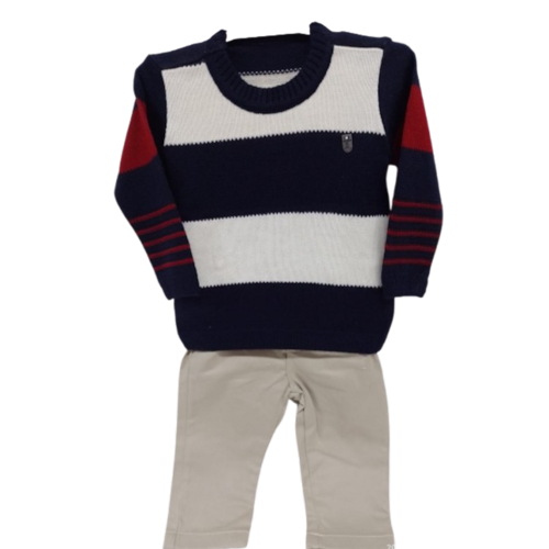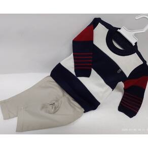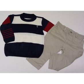 Conjunto Bebê Menino Blusa Trico + Calça Sarja Paraiso