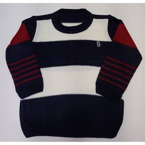 - Blusa em malha tricô super macia e confortável. Detalhe para as listras em três cores, que dão um charme todo especial a peça. Possui gola redonda. Plaquinha personalizada da marca aplica na frente.