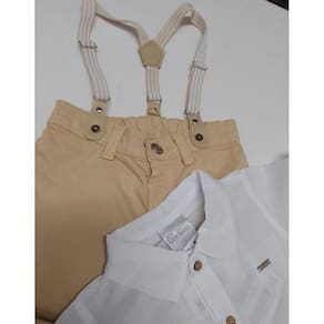 Conjunto Luxo Bebê Menino Camisa + Calça Sarja Paraiso
