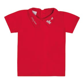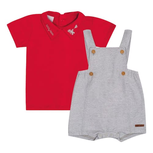 Um momento especial, merece um look especial para o bebê! Conjunto composto por uma jardineira em tecido eco na cor cinza com etiqueta termocolante próximo a perninha e detalhe de quatro botões na parte frontal do peito deixando o look charmoso e fashionista. Acompanha uma camiseta meia malha na cor vermelhoe gola polo com bordado. Uma fofura! *Sugestão Look Natal