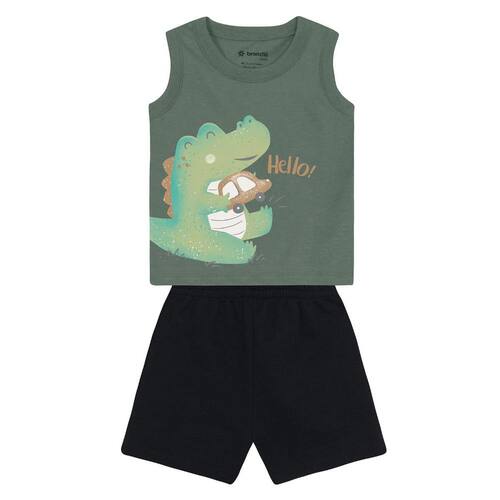 Deixe seu pequeno estiloso e confortável com o conjunto bebê menino da Brandili! Composto por uma regata em meia malha, apresenta uma divertida estampa em puff de jacaré que vai encantar todos. A bermuda em moletinho possui cós elástico, garantindo liberdade de movimento para as aventuras do dia a dia. Ideal para os dias quentes, esse look é perfeito para passeios e brincadeiras. Combine com tênis e um boné para um visual descolado e cheio de charme!