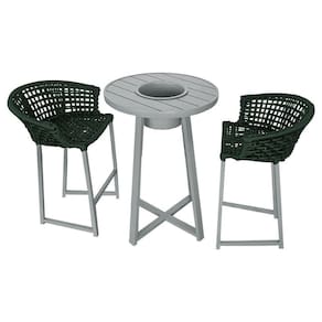 Conjunto Bistrô Champanheira Cinza Tampo Ripado E 2 Banquetas Reis Corda Náutica Verde Musgo Verde