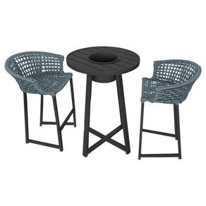 Conjunto Bistrô Champanheira Tampo Ripado E 2 Banquetas Reis Corda Náutica Cinza - Cor: Cinza - Preto