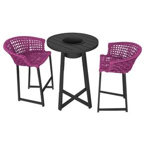 Conjunto Bistrô Champanheira Tampo Ripado E 2 Banquetas Reis Corda Náutica Rosa - Cor: Rosa - Preto