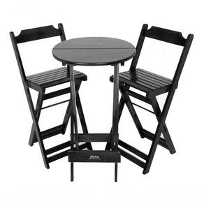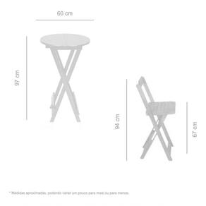 Conjunto Bistrô Dobrável 1 Mesa 2 Cadeirões Madeira Maciça CONJUNTO BISTRÔ DOBRÁVEL EM MADEIRA MACIÇA - 1 MESA e 2 CADEIRÕESQuem é que não gosta de um churrasquinho em casa com a família? ou de um happy hour com os amigos depois daquele dia estressante? Pensando nisso, foi assim que desenvolvemos esse modelo de banqueta, com seu encosto extremamente confortável e mesa bistrô produzida com madeira maciça de lei, e seu acabamento que agrega qualidade e resistência suportando até 130 kg, com toda certeza é uma peça que além de funcional se torna elemento fundamental da decoração de qualquer ambiente!!! Mesa:Tampo mesa: 60 cm;Altura: 97 cm. Cadeirão:Assento ao Chão: 67 cm;Encosto ao Chão: 94 cm. Informações Adicionais:Garantia: 90 dias contra defeitos de fabricação. Obs. A cor pode variar da foto conforme a tonalidade da madeira e iluminação.. !! Marca: Brasil Móveis
