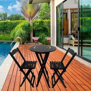 Conjunto Bistrô Dobrável C/2 Banquetas Preto - Ideal para Decks e Bares