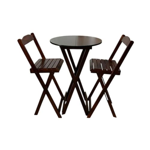 Conjunto Bistrô Dobrável em Madeira 3 Peças Imbuia -
