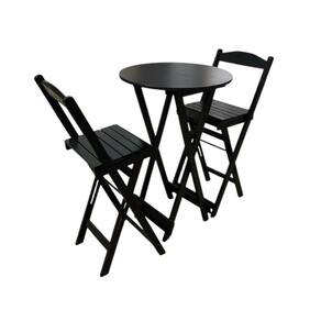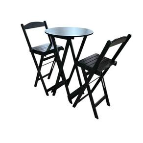 MadeiraConjunto Bistrô Dobrável em Madeira – 3 Peças Preto -