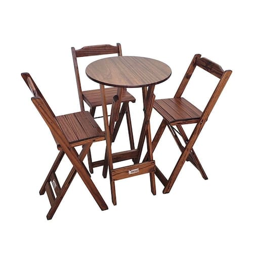O Conjunto de mesa redonda e banqueta bistrô é ideal para bares, restaurantes, estabelecimentos, áreas de lazer e também para sua casa. Em madeira maciça, tornando-os resistentes e duráveis. Seu design permite que esse conjunto seja encaixado em qualquer ambiente, trazendo um toque a mais para seu estabelecimento. Além de sua durabilidade, o que lhe trará conforto para servir seus clientes. Por ser dobrável torna-se mais fácil guardar, manusear e limpar o produto.
