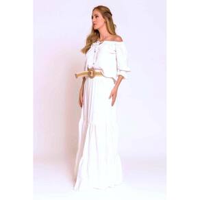 Conjunto Blusa Saia Longa, rodada, forrada, cintura alta, cós largo e blusa ciganinha com elástico na gola e amarração, punho com elástico. O conjunto ciganinha é a combinação perfeita entre elegância e boho, é um look moderno e confortável, perfeito para várias ocasiões. Código do Produto: 1367 Marca: Khalli