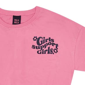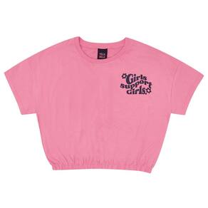 Um conjunto básico também compõe looks incríveis! Nosso conjunto garotas conta com a blusa confeccionada em tecido meia malha na cor blush com detalhe de escrita estampada no peito com a frase “girls support girls” (garotas apoiam garotas). O short confeccionado em moletinho na cor blush possui próximo a bainha etiqueta termocolante com identificação Pulla Bulla. Um conjunto desses pede por um piquenique entre amigas, não é?