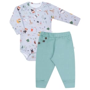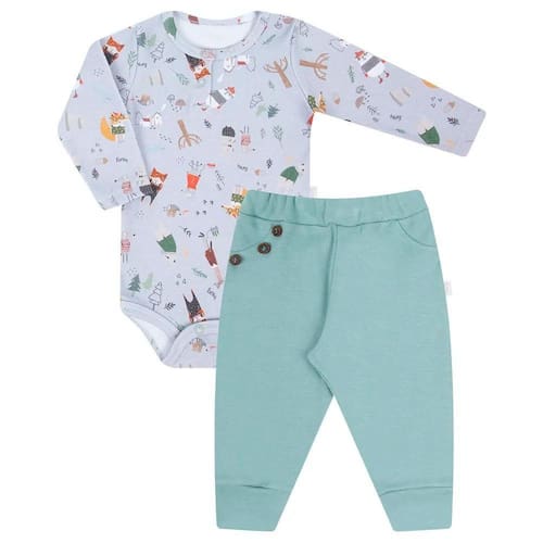 Conjunto Body Longo + Calça Culote, estilo para seu bebê, com conforto e toque de maciez exclusivo Hug. Item indispensável no guarda - roupas.
