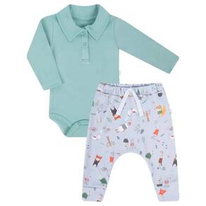 Conjunto Body Longo Gola Polo + Calça Saruel Escandinavo - Hug: Estilo para seu bebê, com conforto e toque de maciez exclusivo Hug. Item indispensável no guarda - roupas.