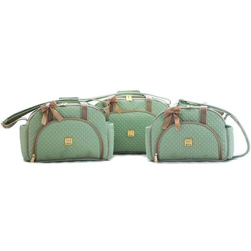 Kit bolsas maternidade miellu - linha pópeti - 4 peçasKit maternidade desenvolvido pela miellu com a finalidade de proporcionar praticidade, conforto, qualidade, estilo e durabilidade= exterior- fabricada em material sintético antialérgico externamente, material resistente, que não descasca e de fácil limpeza.- alças reforçadas com fita cadarço- alça tira-colo ombro - bolso frontal- bolso lateral dos dois lados da peça para facilitar o dia-a-dia- ampla abertura do compartimento principal proporcionado pela tampa central com dois cursores, o que facilita a organização e manuseios dos itens na bolsa.- ferragens em dourado- laço de cetim na alça.= interior- internamente forrada em bagum e nylon branco, garantindo higiene, facilidade de limpeza e durabilidade, sem agregar peso a bolsa.- porta mamadeira térmico embutido, mais praticidade e proteção para a mamadeira apenas na bolsa g e na bolsa m - porta objetos no interior para facilitar a organização- bolso interno na tampa da abertura principal para cartões, chaves ou documentos Dimensões- 1 bolsa grande - 41cm largura x 27cm altura x 20cm profundidade- 1 bolsa média - 36cm largura x 25cm altura x 17cm profundidade- 1 bolsa pequena 34cm largura x 23cm altura x 16cm profundidade- 1 trocador 68x39= as bolsas grande e média são equipadas com porta mamadeira térmico embutido, a bolsa pequena não possui =Acompanha 3 laços de cetimProduto nacional, feito por brasileiros. Marca: Miellu Bolsas