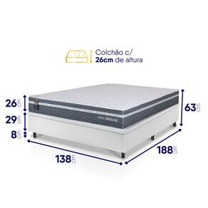 - Altura: 63 cm (colchão) + 8 cm (box) = 71 cm de altura;