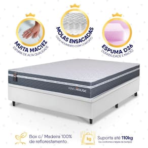 Feito com os mais nobres materiais em sua composição, ele conta com espuma D26 e molas ensacadas. Por ser mais macio, o colchão de molas ensacadas individualmente traz benefícios e ajuda no alinhamento da coluna. O colchão Cairo acomoda melhor o contorno do corpo, dispondo de forma correta quadris e ombros, expulsando as dores e problemas de coluna.Não perca mais tempo e garanta já o seu Conjunto Box Baú Cairo!