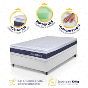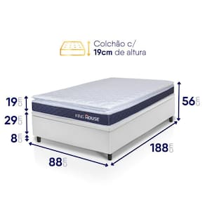 - Altura: 56 cm (colchão) + 8 cm (box) = 64 cm de altura;