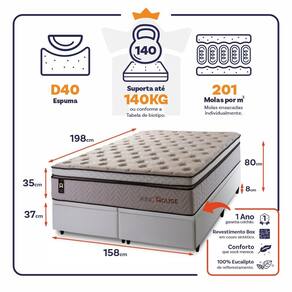 Medidas do Colchão: 88x188x35 cm, 96X203x35 cm, 138x188x35 cm, 158x198x72, 193x203x35 cm.