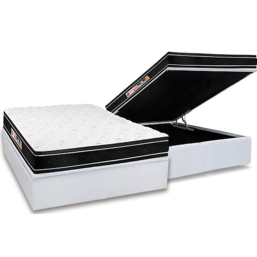 Conjunto Box Baú Casal: Colchão Espuma Castor D33 Black e White Air Euro Pillow + Base CRC Courano White(138x188)