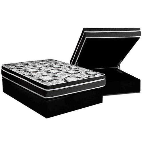 Conjunto Box Baú Casal: Colchão Espuma Luckspuma D45 Gran Luck Pro + Base Crc Suede Black(138x188)