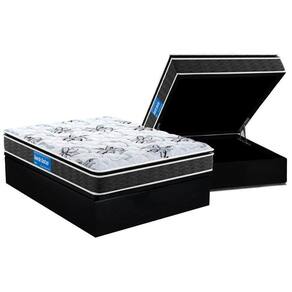 Conjunto Box Baú Casal: Colchão Espuma Probel D33 Guarda Costas Premium Extra Firme Pillow Top + Base Crc Suede Black(138x188)