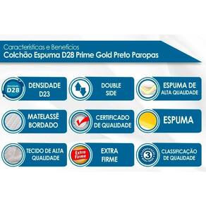 Colchão Casal Espuma D28 Prime Gold AG80 Black (138x188x20) - Paropas