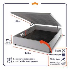 - Altura: 19 cm (colchão) + 37 cm (box baú) + 8 cm (pés) = 64 cm de altura;