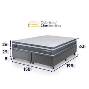 - Altura: 63 cm (colchão) + 8 cm (box) = 71 cm de altura;