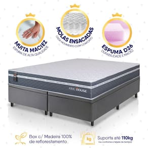 Feito com os mais nobres materiais em sua composição, ele conta com espuma D26 e molas ensacadas. Por ser mais macio, o colchão de molas ensacadas individualmente traz benefícios e ajuda no alinhamento da coluna. O colchão Cairo acomoda melhor o contorno do corpo, dispondo de forma correta quadris e ombros, expulsando as dores e problemas de coluna.Não perca mais tempo e garanta já o seu Conjunto Box Baú Cairo!