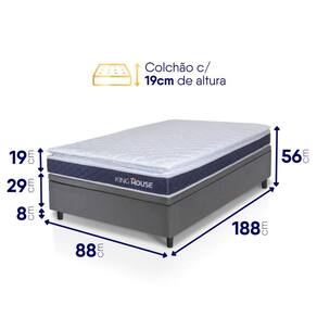- Altura: 56 cm (colchão) + 8 cm (box) = 64 cm de altura;