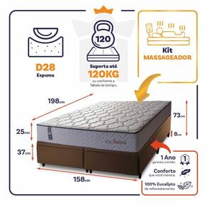 Feito com os mais nobres materiais em sua composição, ele conta com espuma D28. O colchão King House acomoda melhor o contorno do corpo, dispondo de forma correta quadris e ombros, expulsando as dores e problemas de coluna.