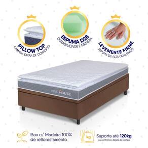 - Altura: 56 cm (colchão) + 8 cm (box) = 64 cm de altura;