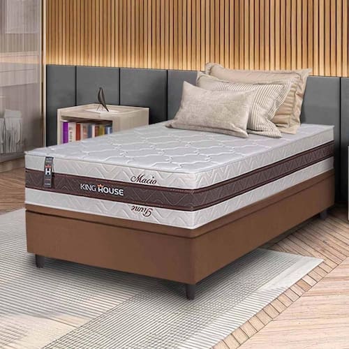 Conjunto Box Baú Marrom Mali Bege Molas Ensacadas Solteiro 88x188x77 - King House