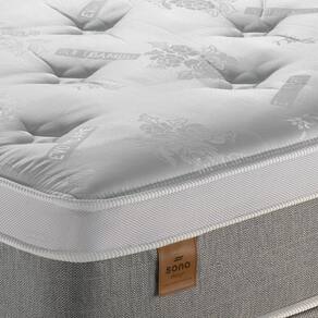 Colchão: Molas SuperLastic revestidas com feltro resinado, enchimento interno superior: Espuma de alta densidade D65, lamina de 5 cm com 2 capsulas de vibromassagem; Tampo com espuma hipermacia e fibra siliconada. Box Bau: Estrutura lateral vazada com madeira de Eucalipto Reflorestado; tampa e fundo com chapa de MDF.