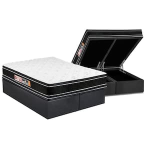 Conjunto Box Baú Queen: Colchão Espuma Castor D33 Black e White Air Double Face Euro Pillow + Base CRC Suede Gray(158x198)