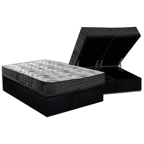 Conjunto Box Baú Queen: Colchão Espuma Paropas D45 Pasquale Wave Black + Base CRC Suede Black (158x198)