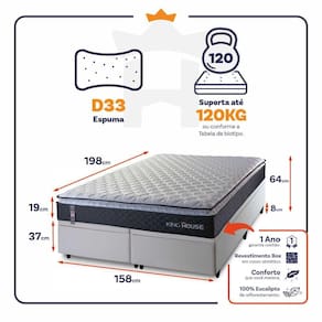 O Colchão Dakota é feito com os mais nobres materiais em sua composição, ele conta com espuma D33. Por ser mais macio, o colchão traz benefícios e ajuda no alinhamento da coluna. O colchão King House acomoda melhor o contorno do corpo, dispondo de forma correta quadris e ombros, expulsando as dores e problemas de coluna.